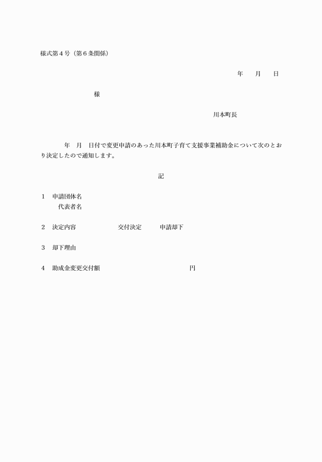 第4条 補助金の交付を受けようとする団体(以下「団体」という。)は、補助金交付申請書(様式第1号)により申請するものとする。